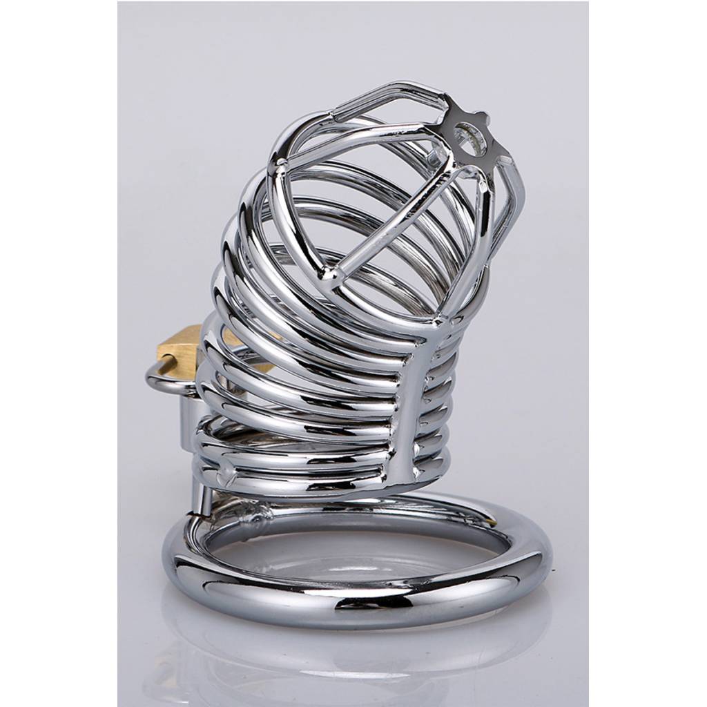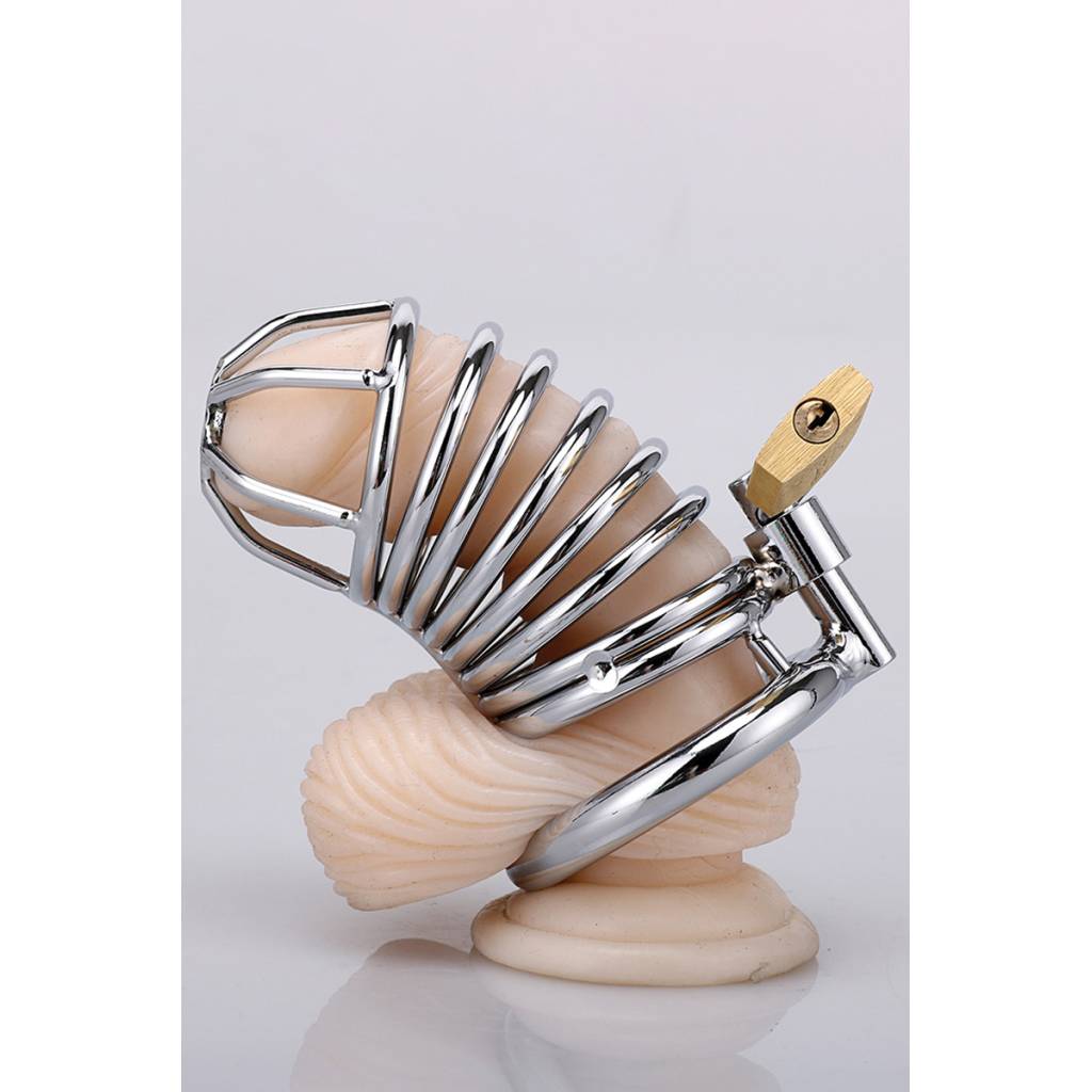Equipement BDSM de qualité, cette cage à pénis XXX Dreamtoys est conçue en métal chromé, sans nickel.