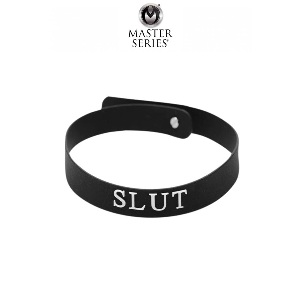 La marque Master Series, spécialiste des jeux Fetish SM, propose le collier de soumission SLUT en latex noir. Avec son inscription bien visible, en relief blanc sur le devant du collier, il est idéal pour une sortie nocturne, ou une séance BDSM coquine...