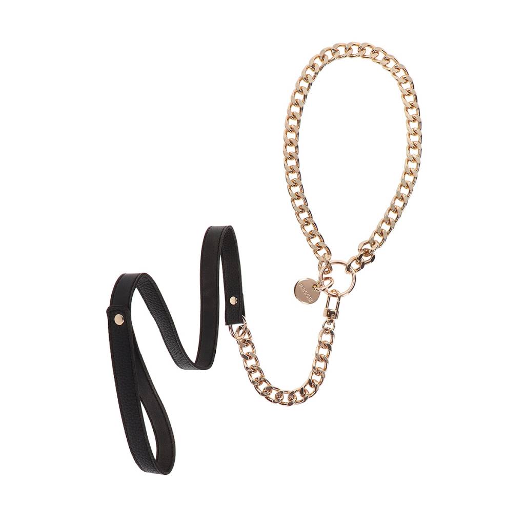 Luxueuse laisse BDSM "Taboom Dona Statement" en cuir PU et métal doré rose gold.