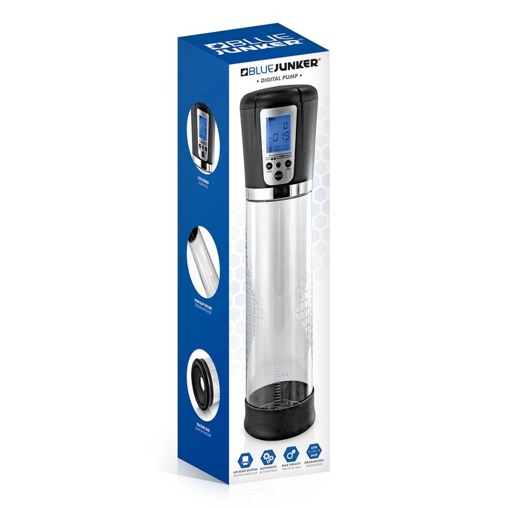 Ce développeur de pénis de la marque Blue Junker est composé d'une pompe automatique rechargeable (à l'aide d'un câble USB fourni) qui permet d'accéder simplement à 5 niveaux de pression en appuyant sur un des boutons de son panneau de contrôle.
