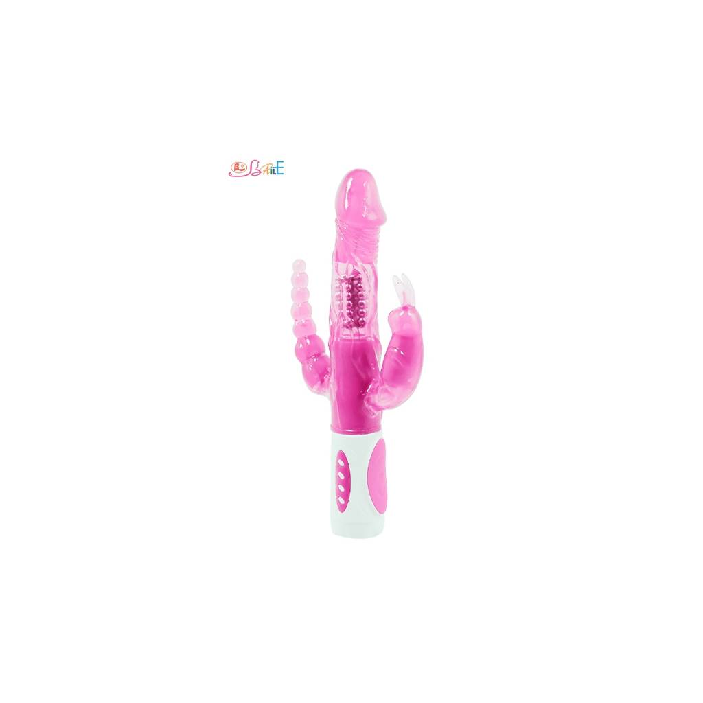 Véritable vibromasseur tout-en-un, Le vibro Pretty Bunny dispose de fonctions rotatives au niveau du gland et du corps principal (au niveau des billes) tandis que le stimulateur clitoridien et le stimulateur anal ont des fonctions vibrantes. Au total ce ne sont pas moins de 12 modes de vibration et 4 modes de rotation que vous pouvez régler simplement pour satisfaire vos envies.