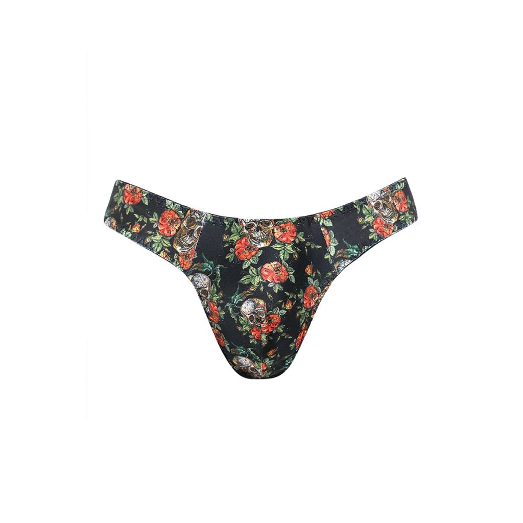 Ce string sexy est fabriqué en Tissu doux imprimé de crânes et roses esprit RocknRoll.