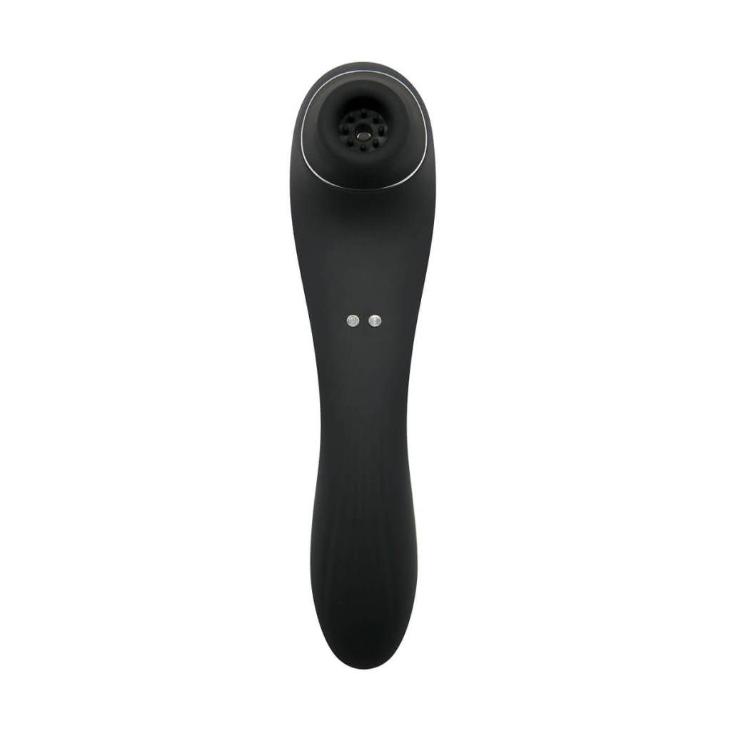 Dédié aux amatrices de plaisirs multiples, la marque Wooomy présente Smooch noir, un sextoy suceur de clitoris d'un côté et de l'autre un vibromasseur pour la pénétration.