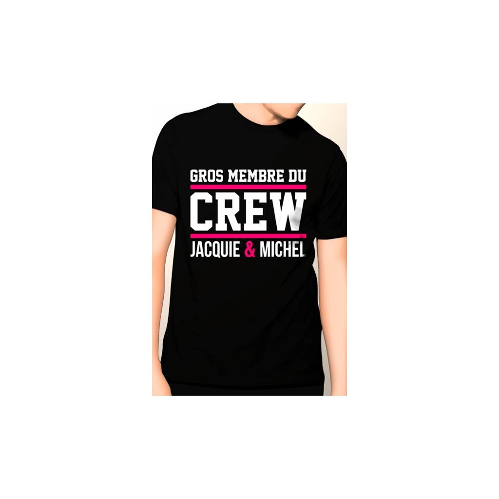 Tee-shirt homme 100% coton "Gros membre du CREW Jacquie & Michel". Disponible de la taille S à XXL